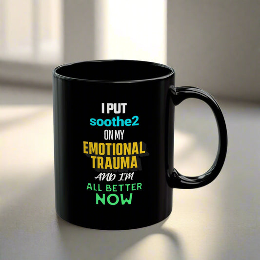 I Put Soothe 2 On My Emotional Trauma & I'm All Better Now - Ceramic Mug, Black (11oz.)