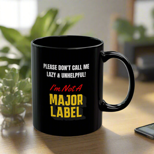 Please Don't Call Me Lazy & Unhelpful! I'm Not A Major Label - Black Ceramic Mug