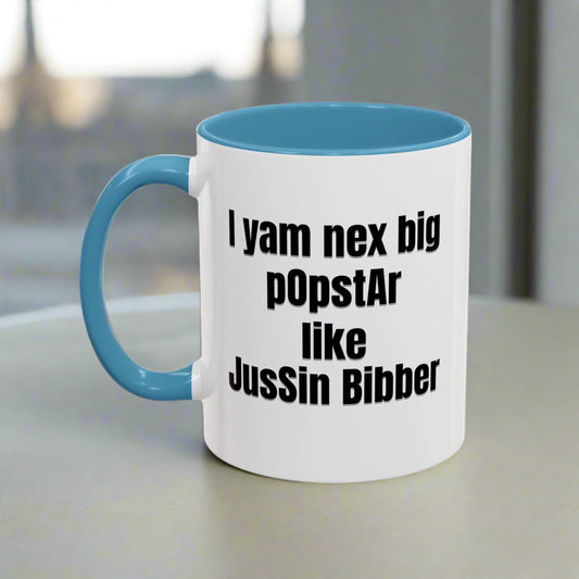 'I yam nex big pOpstAr like Jussin Bibber' - Color Accent Mug (11oz.)